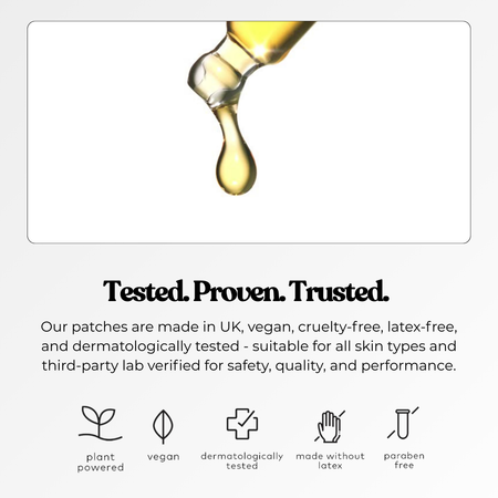 Our vitamin-infused wellness patches start working right away. Once applied, ingredients are absorbed through the skin within minutes, providing steady support throughout the day.